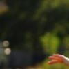 女生吹漂手中的花瓣